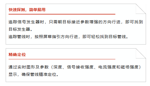 里奇SRM-ZT10管线定位仪,采用最新专利技术的全向天线,可通过图形化管线显示及导向箭头等信息,实现快速精确定位,满足用户的需求,主要应用于管线定位,也可定位信号发生器。