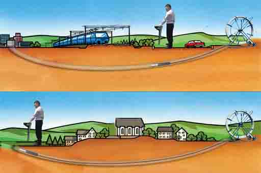信标探测器通过发送可使地下信标感应的特定低频脉冲信号,定位预埋于地下管道上方的信标的分布;该仪器把这种感应信号转变为音频报警信号从而确定管道位置。信标探测仪可探测圆柱形 或环状的地下信标。不同埋设深度的信标对应不 同的频率。埋地信标探测法只适合于在管道施工时及管道抢修后,在管道重要的位置(如三通 ,拐 点,盲端 ) 的上方布设,对管线的前期有要求,对于在前期埋设时大多没有布设的管线是没有办法探测的。