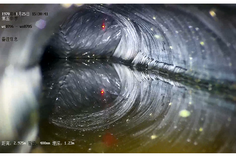 前期QV潜望镜进行简单的内窥检测,主要检测水位、管内淤泥、堵塞、坍塌等情况,用于简单的普查,普查发现较为严重的需要用机器人进行爬行检测。